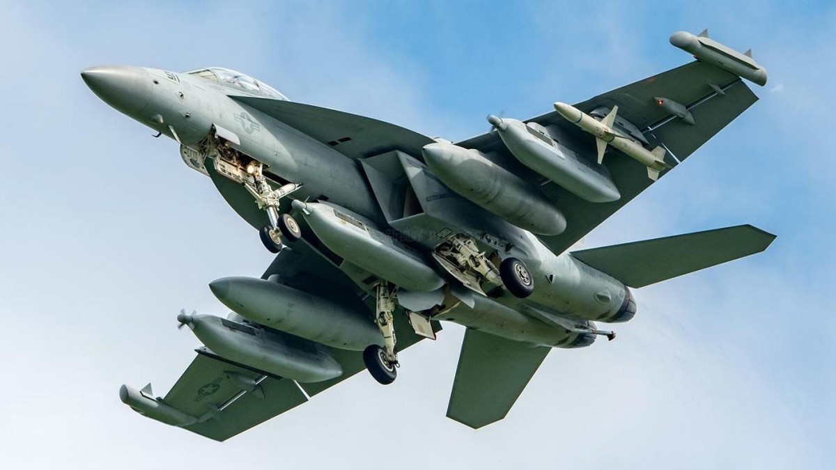 美国EA-18G一共有9个挂点,其中5个是重挂点,最多能挂5个电子战吊舱。