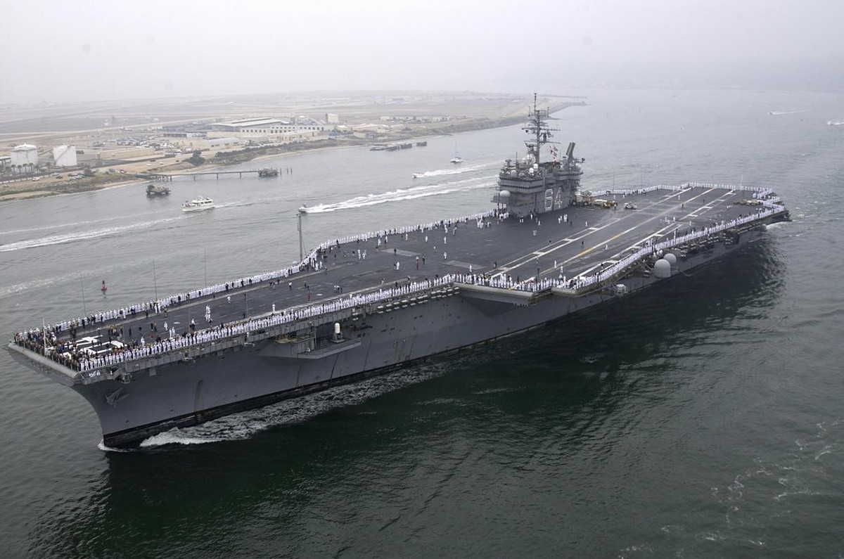 (美国小鹰级航母)在这个过程中,美国不断派遣电子侦察机和反潜机追踪中国核潜艇,并做出了攻击姿态。